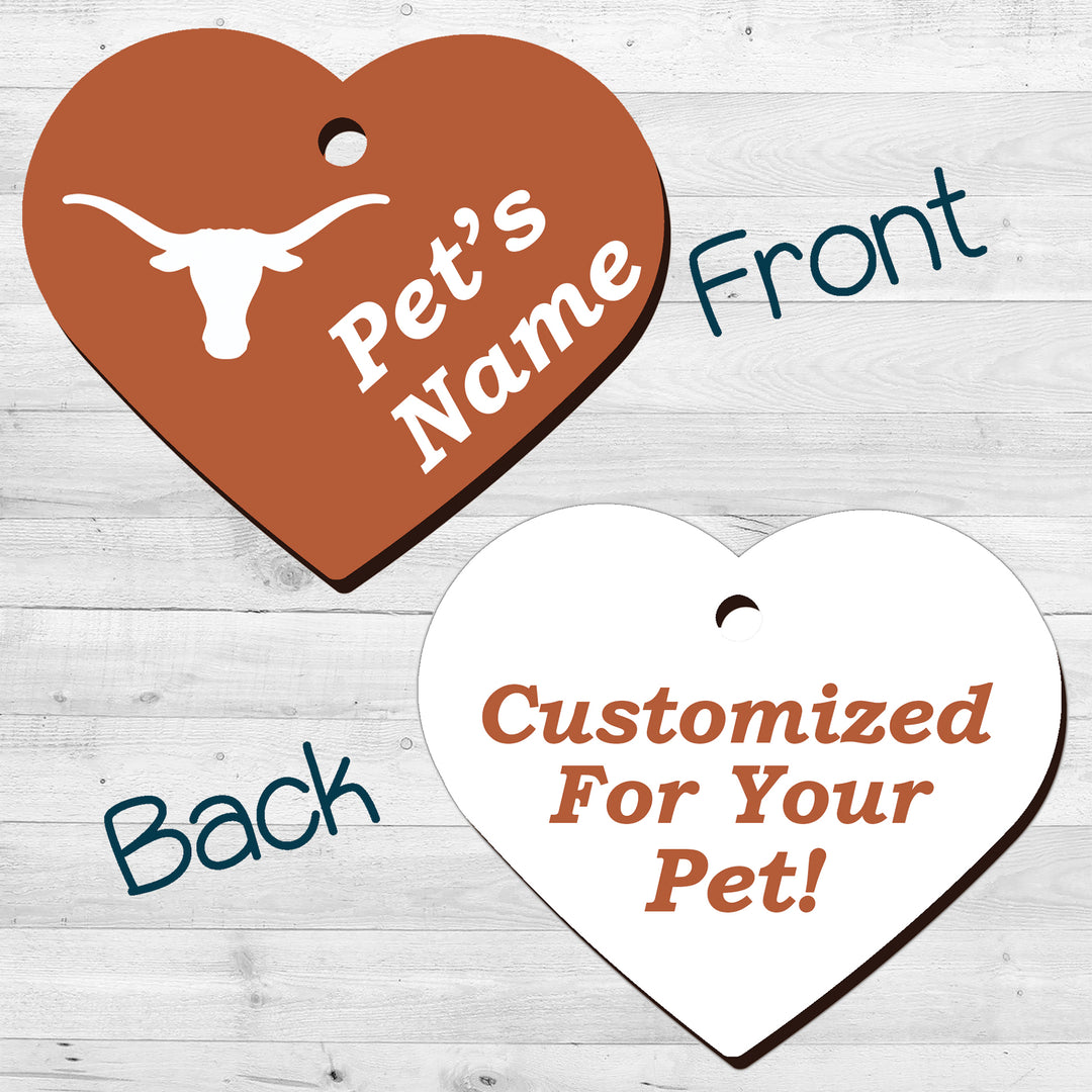 Made for cats and dogs, our customized Miami Hurricanes pet ID tag is a great way to keep your pet safe and feeling loved. This durable heart shaped tag is designed to hold up to damage from weather, water, and any ruff-housing! Our officially licensed tag will make sure your companion is always game-day ready! The lightweight, smooth tag can be personalized with a name on front and up to 3 lines of text on the back, ensuring your furry friend’s vital contact information will never rub off.