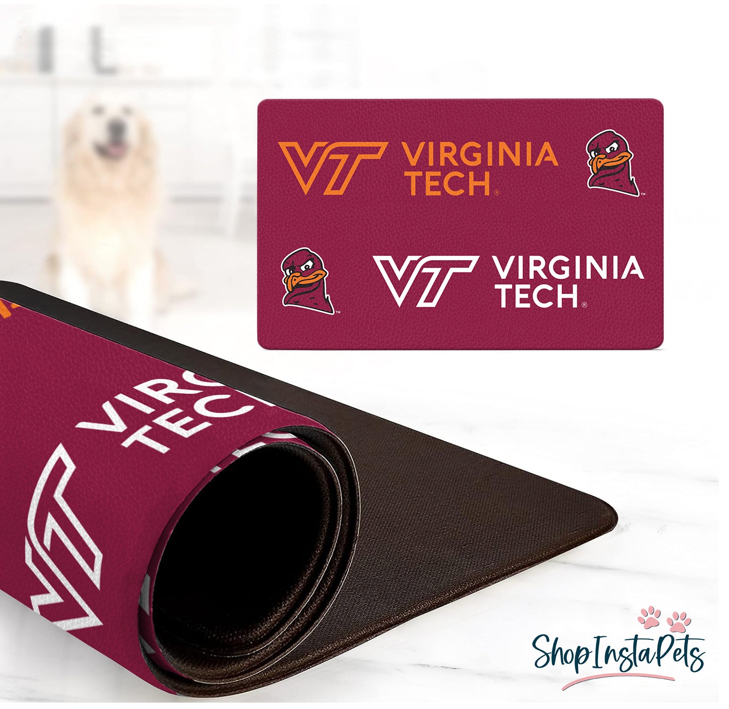 Transform your dog's mealtime into a celebration of team spirit with our NCAA officially licensed dog mat for the Virginia Tech Hokies. Order now and elevate your pet's feeding area to a whole new level of style.